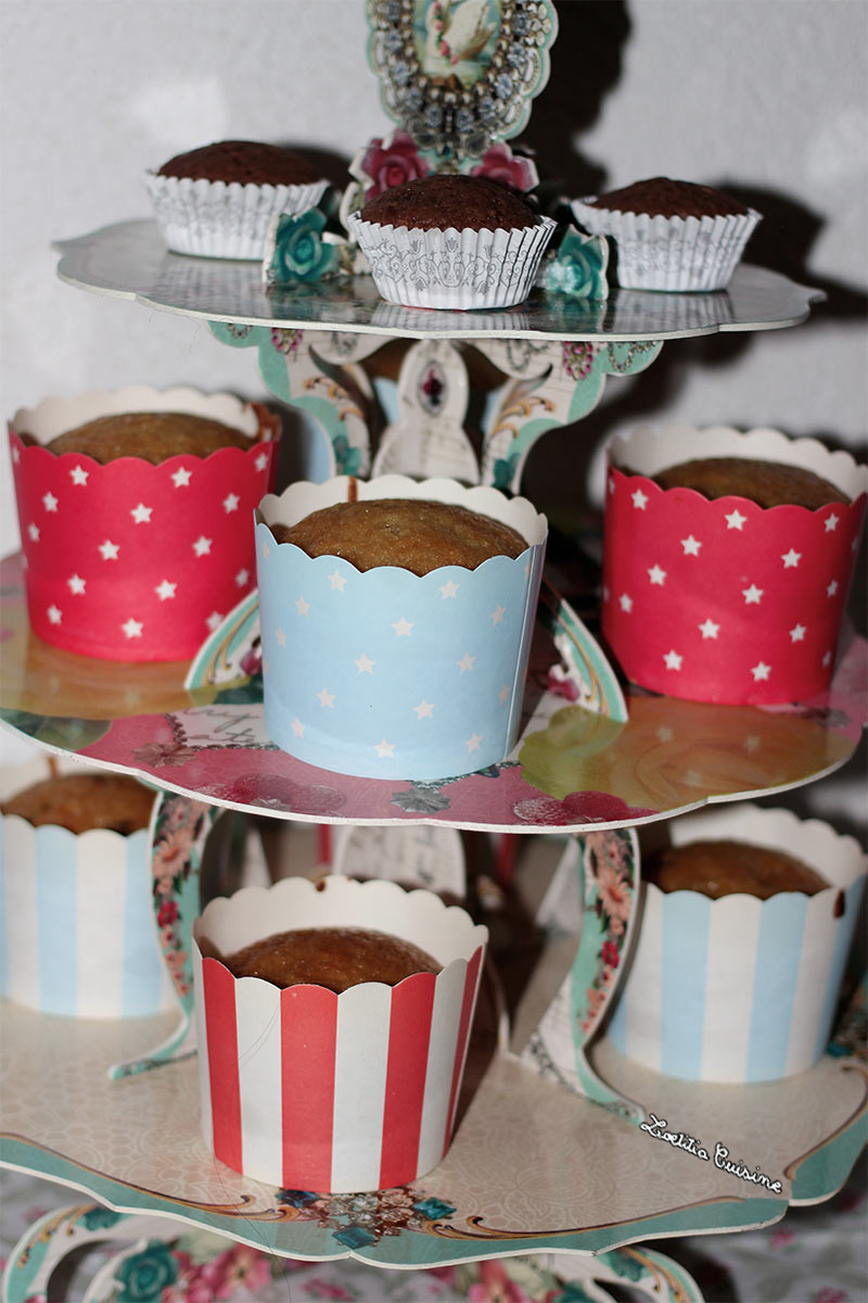 J’ai utilisé des moules à muffins pour une plus jolie présentations, mais vous pouvez très bien cuire ce gâteau dans un moule à cake. Il faudra juste augmenter un peu le temps de cuisson.