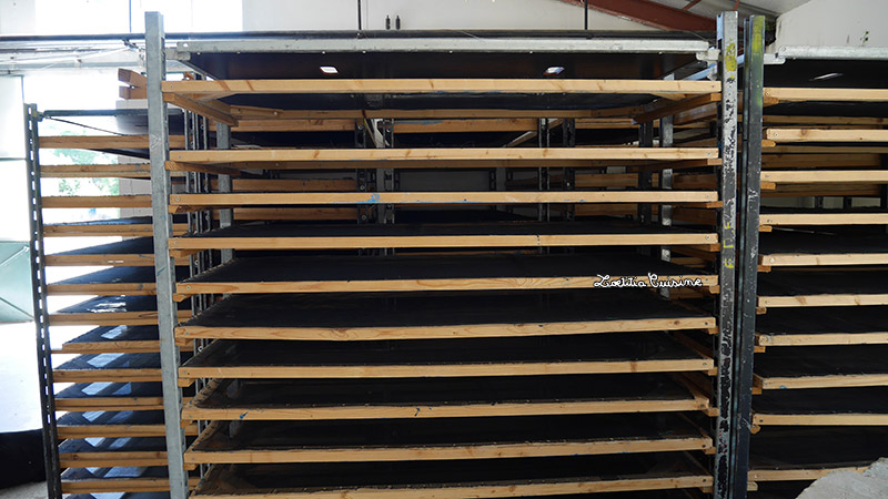 Il nous a fait visité les serres avec les bassins (qu’il a créé lui même). Les deux enfant de moins de 3 ans (mon fils et la fille de nos amis) auraient bien fait trempette dans l’eau verte. Ils nous a montré tous les systèmes ingénieux qu’il a inventé pour cultivé, récolter, façonner, sécher sa spiruline. Le tout le plus simplement du monde. J’ai adoré sa philosophie et se manière de voir les choses.